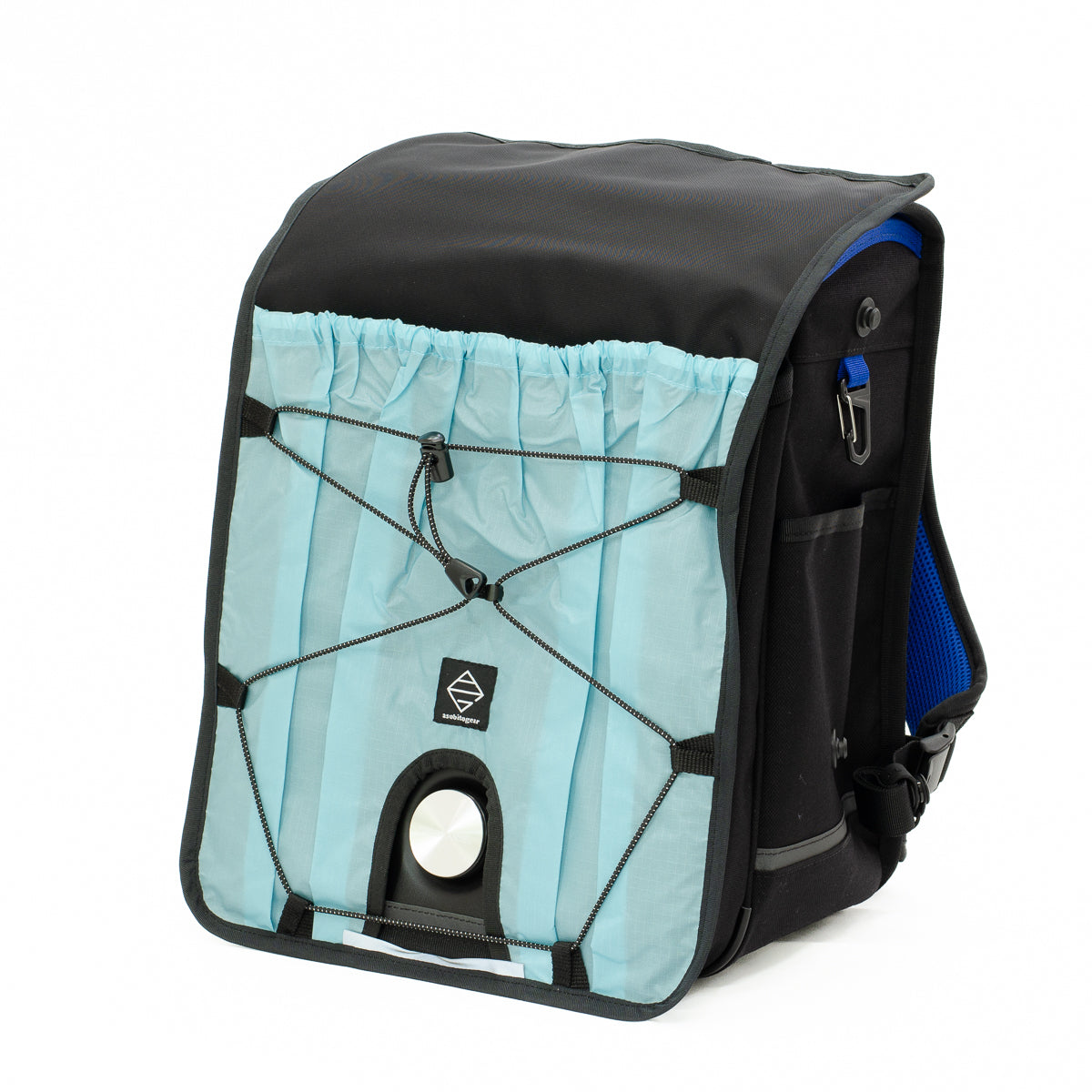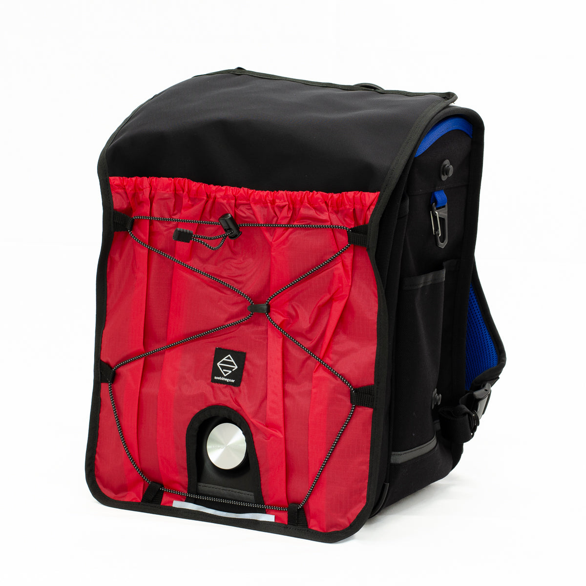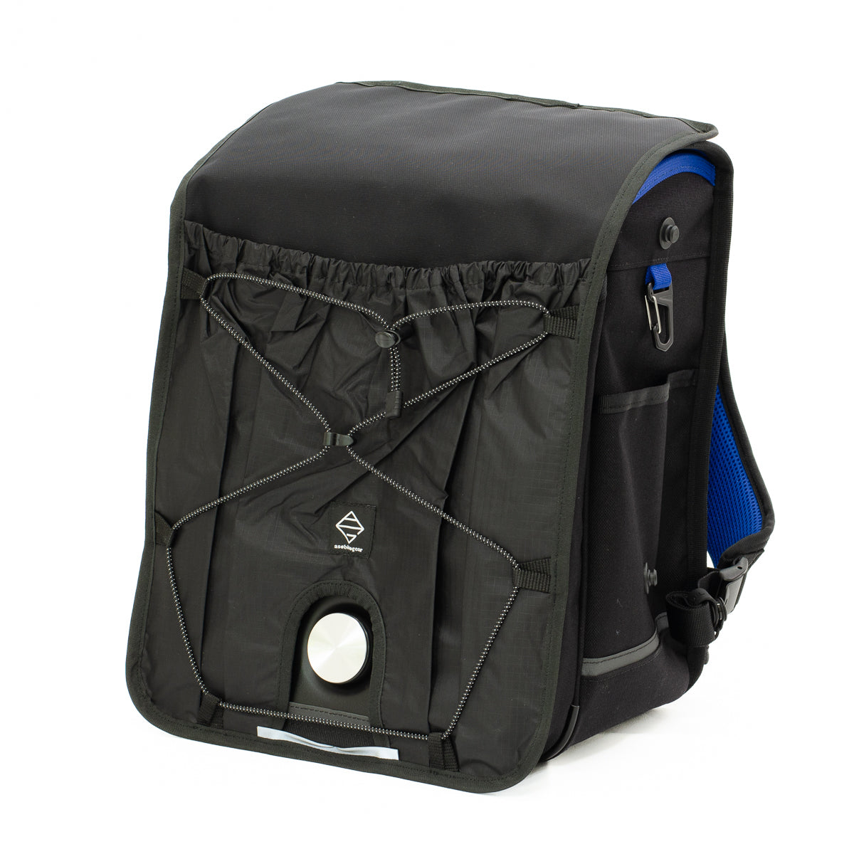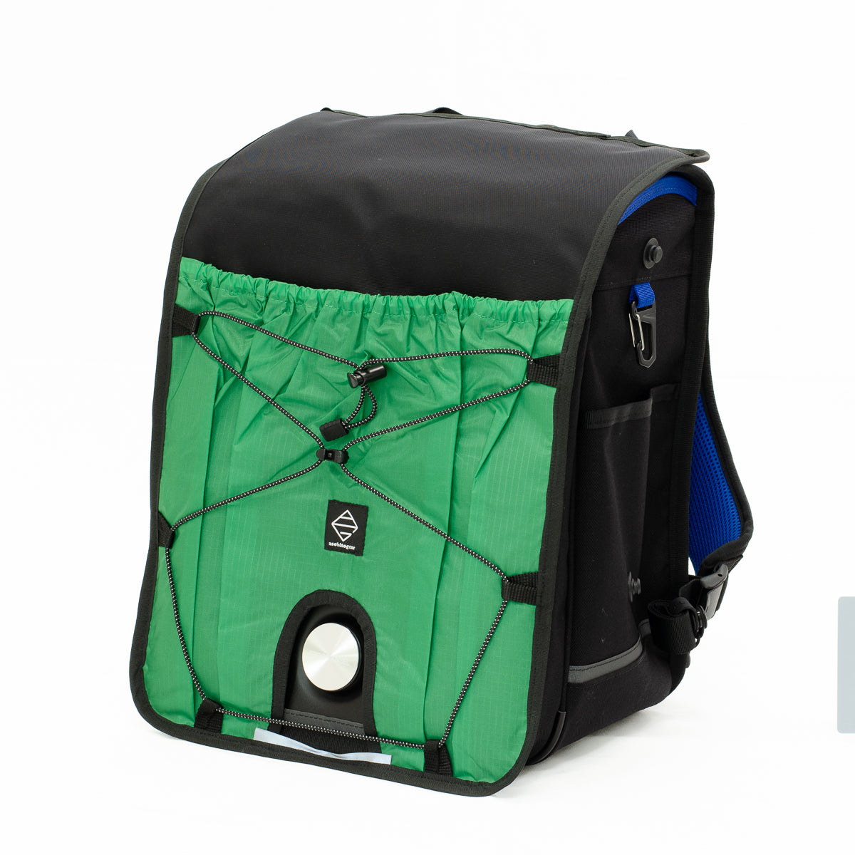 ポケットには、上履きや体操服などを入れることができ、バンジーコードには、脱いだ上着などをひっかけられ、手ぶらでの通学が可能です。