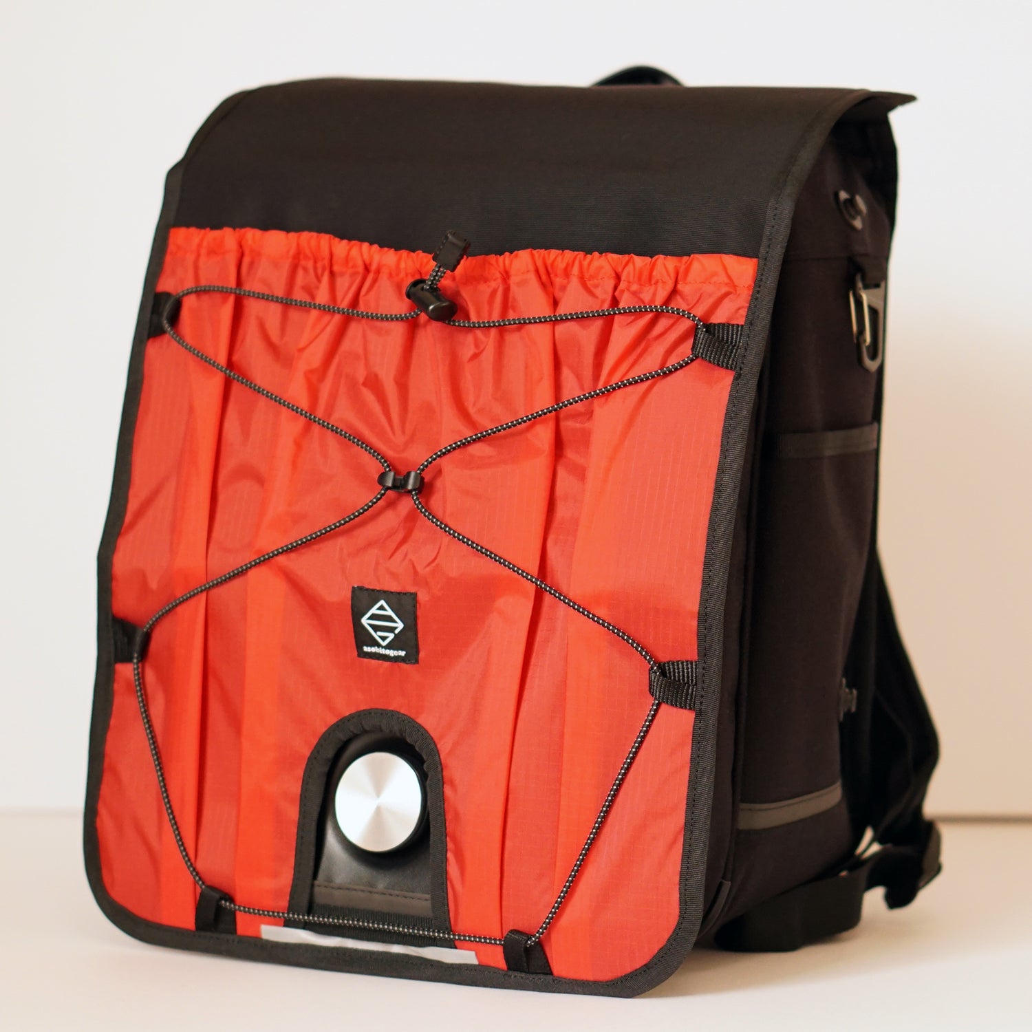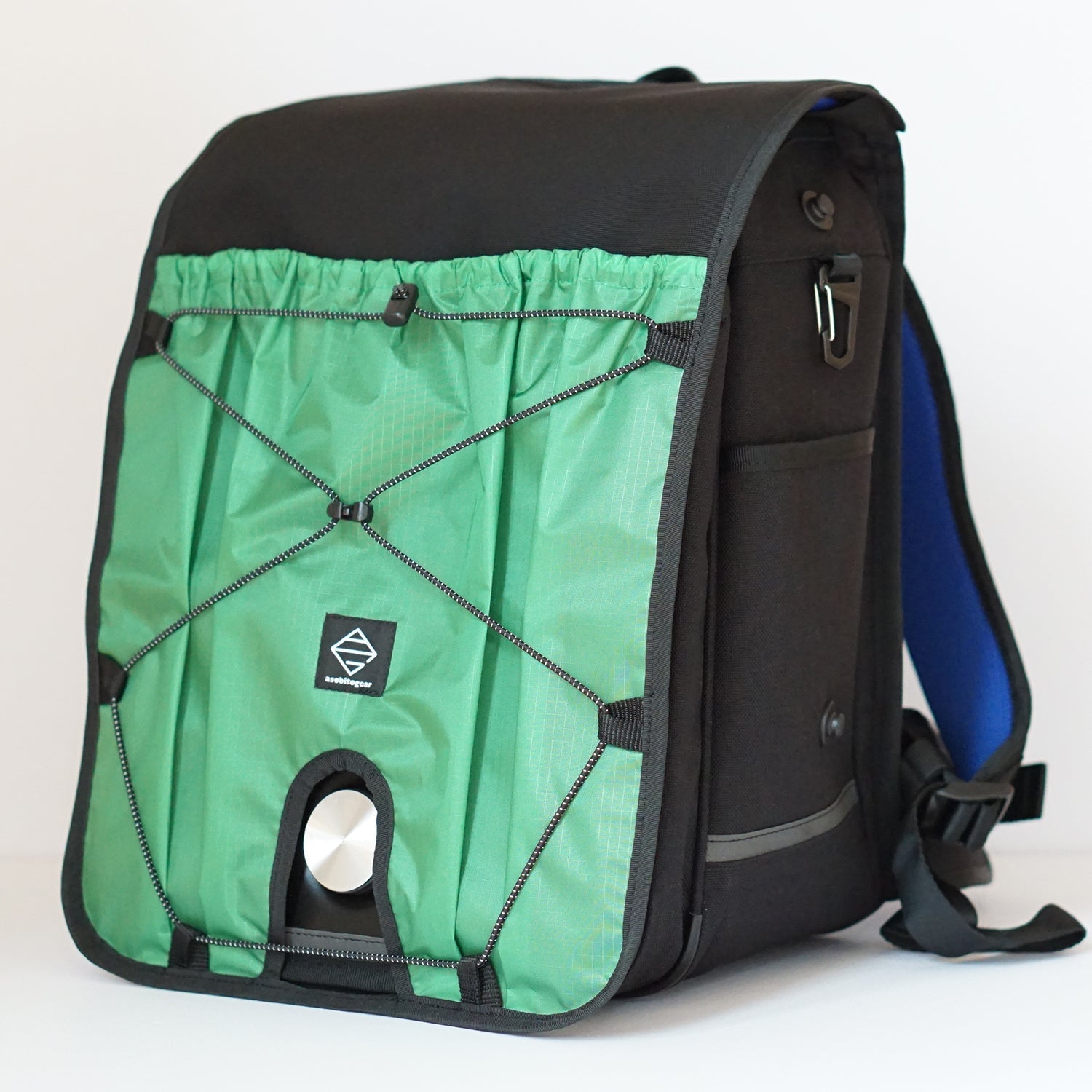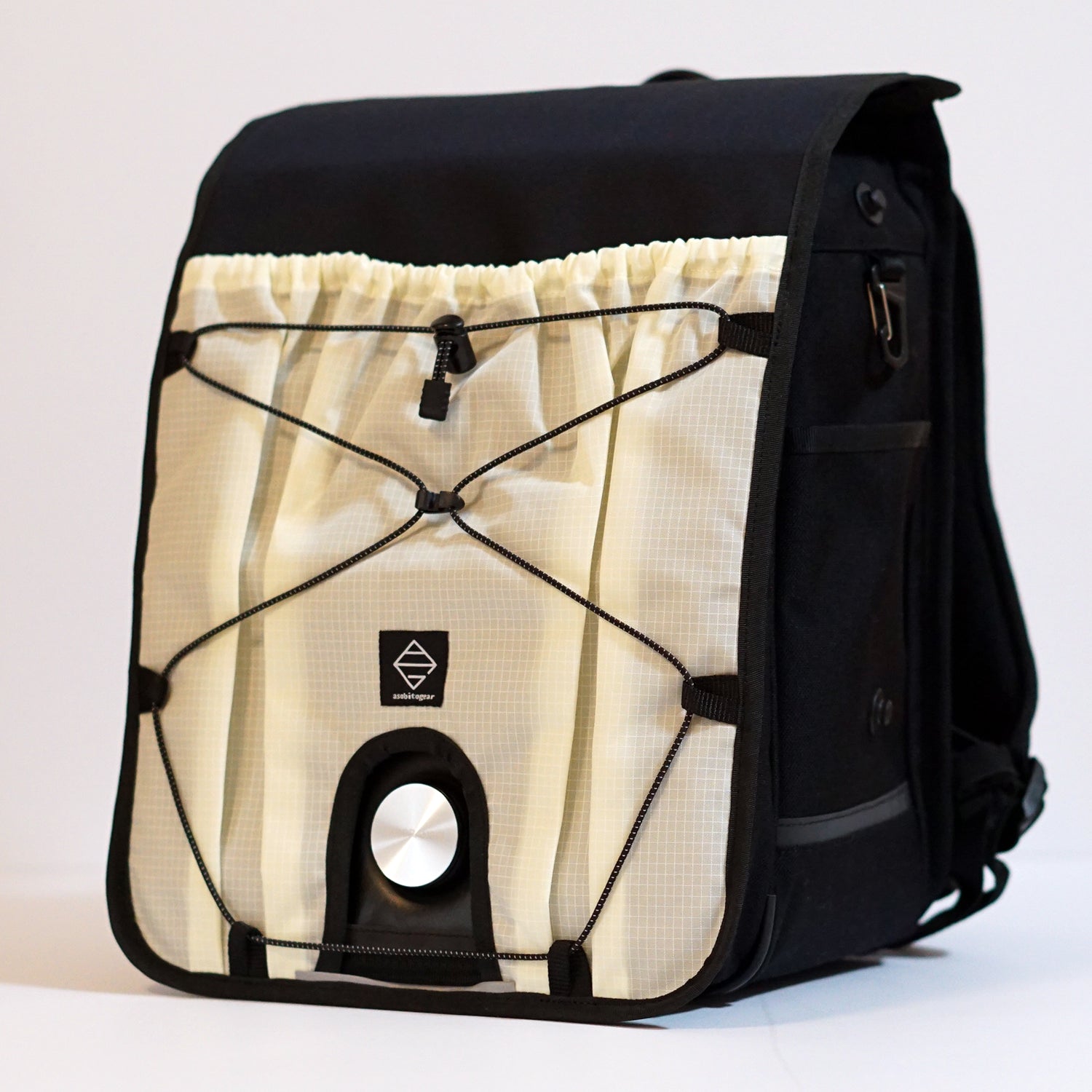 - ポケットには、上履きや体操服などを入れることができ、バンジーコードには、脱いだ上着などをひっかけられ、手ぶらでの通学が可能です。