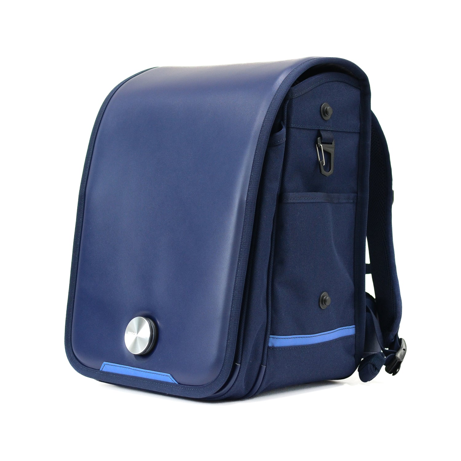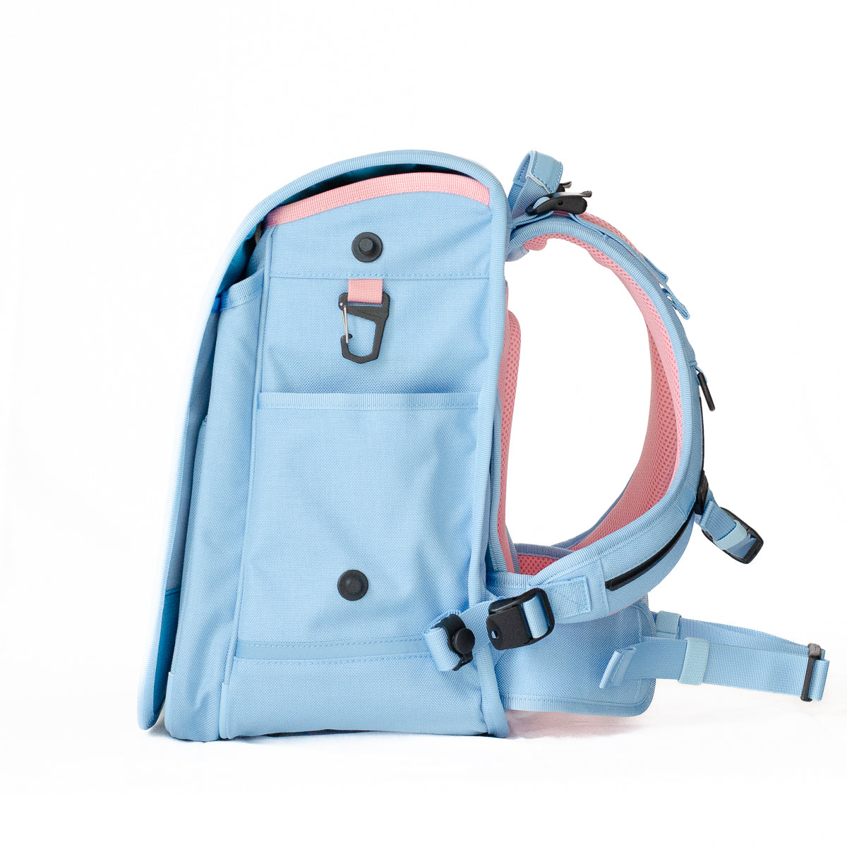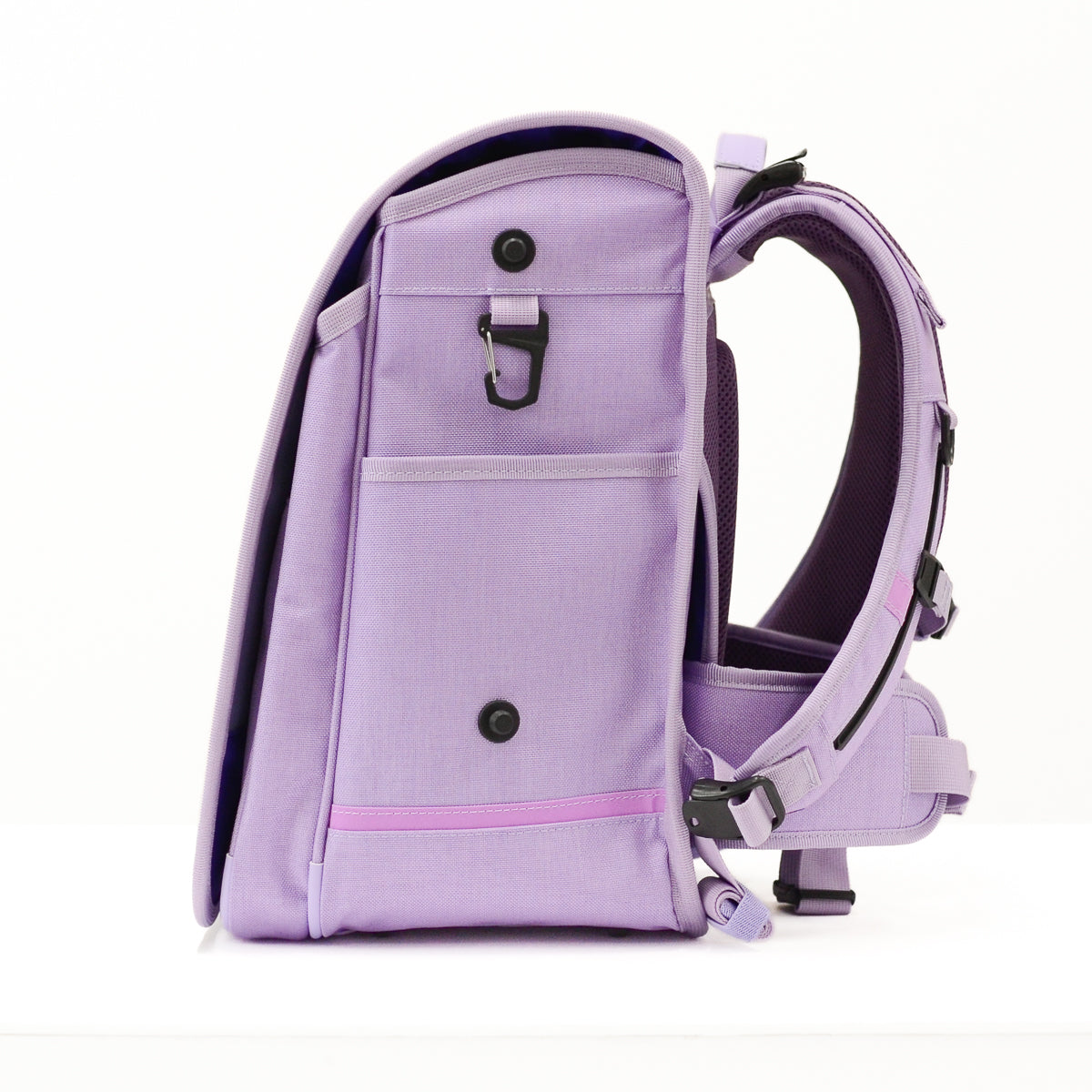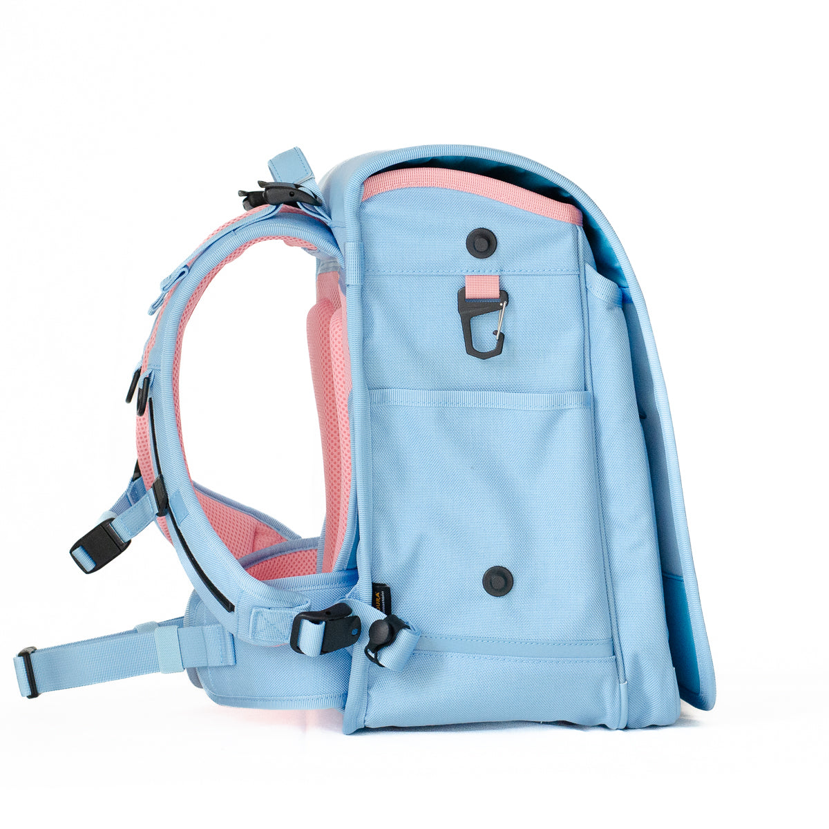 - 入りきらない荷物は、横マチに取り付け可能な専用ポーチ(別売り)で容量アップが可能です(手ぶら通学を目指します)。