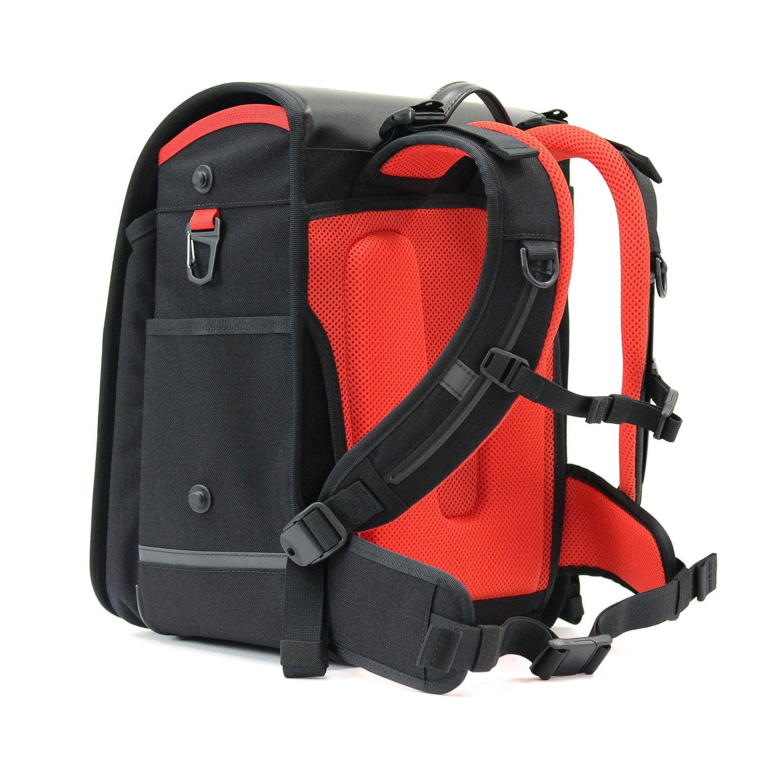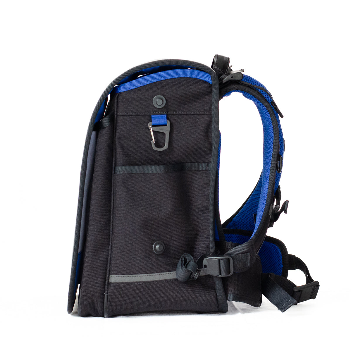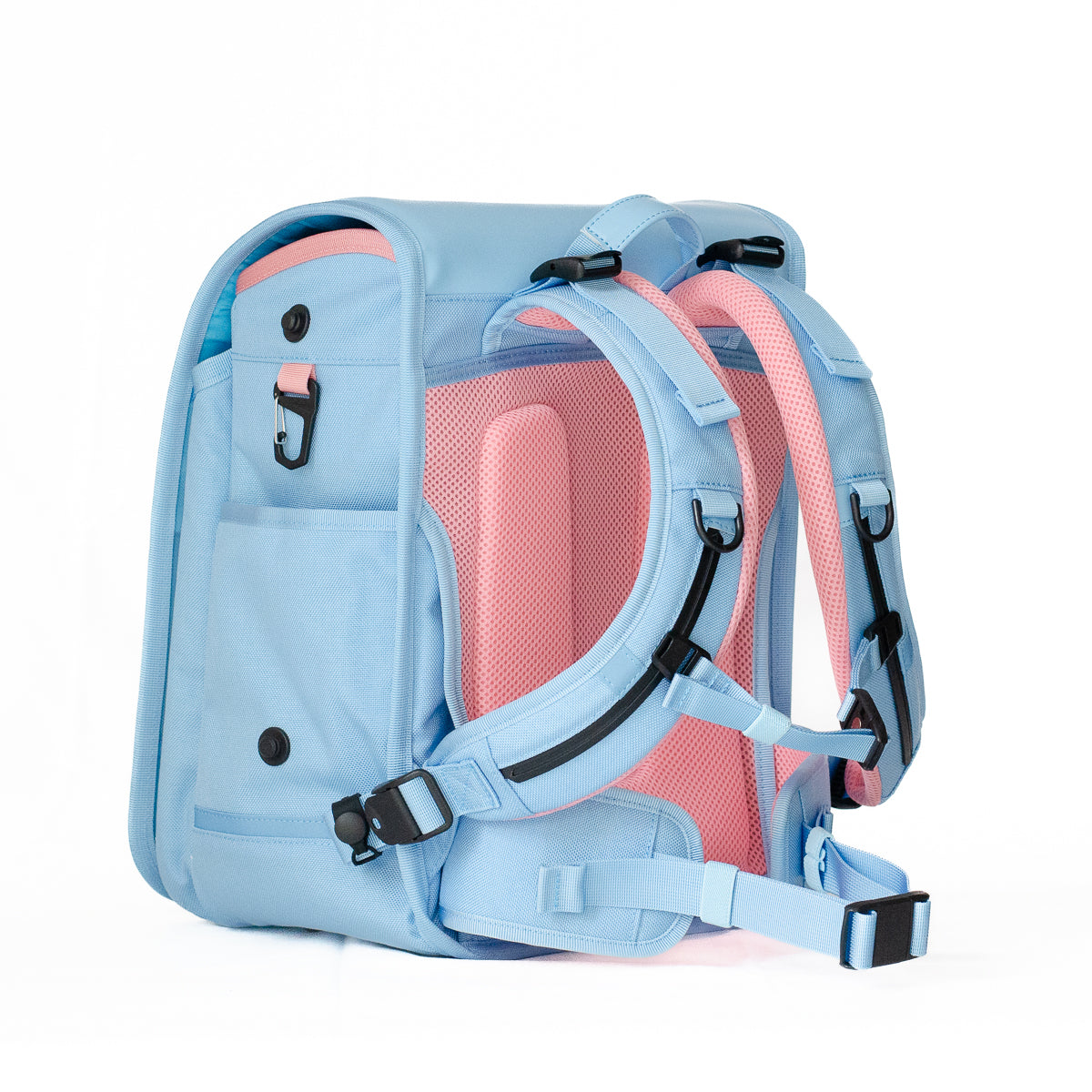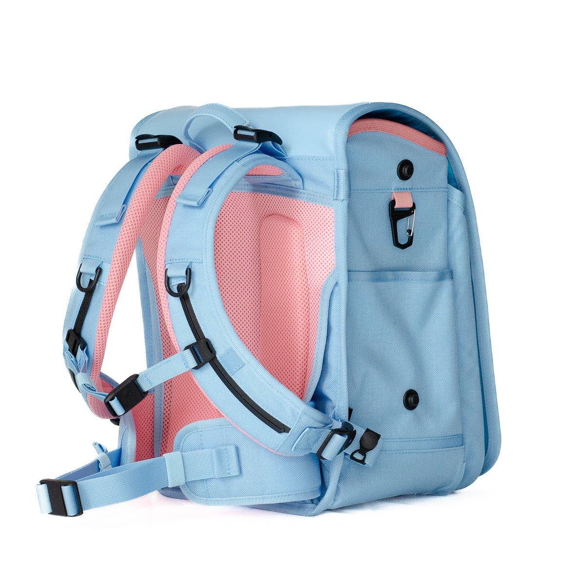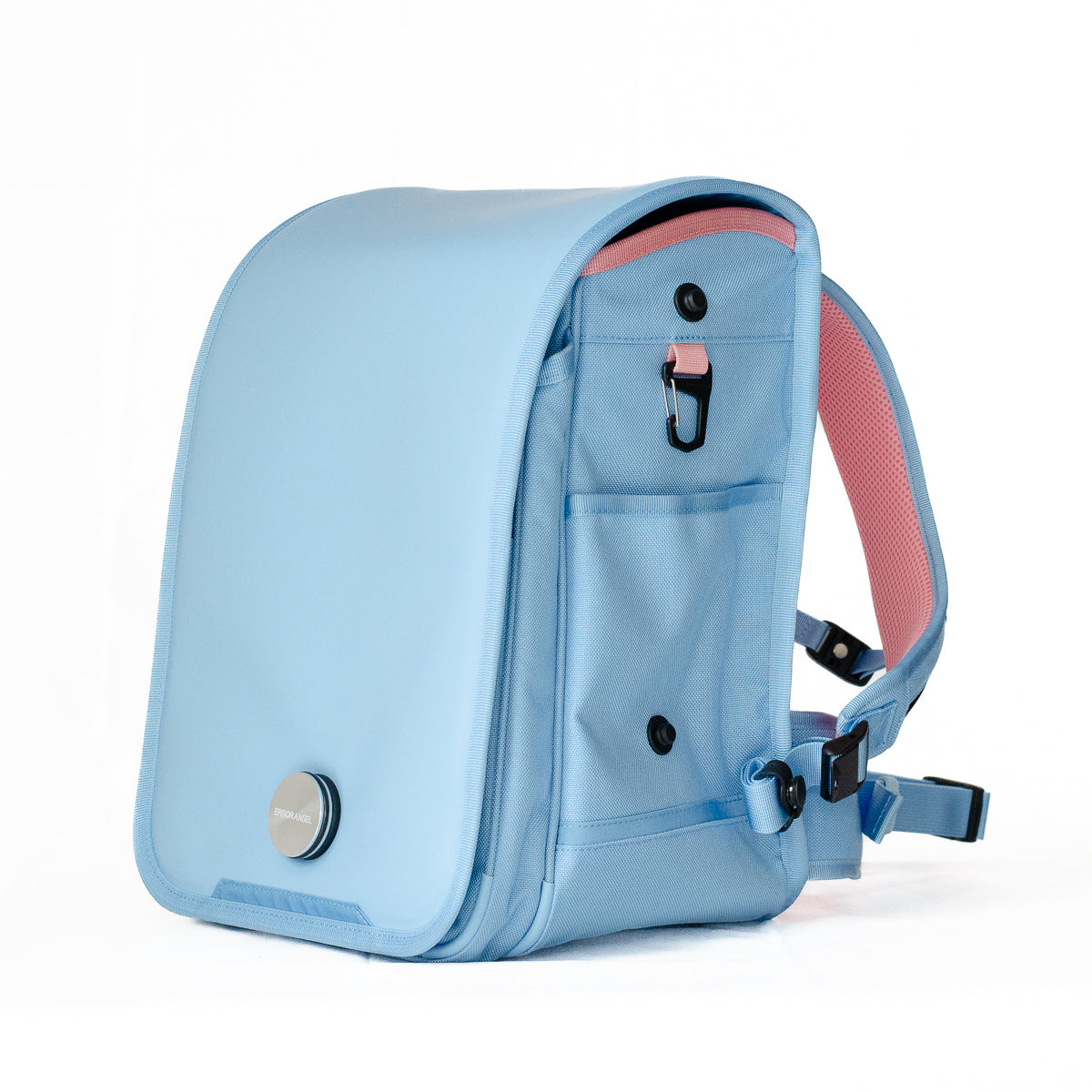 - 入りきらない荷物は、横マチに取り付け可能な専用ポーチ(別売り)で容量アップが可能です(手ぶら通学を目指します)。